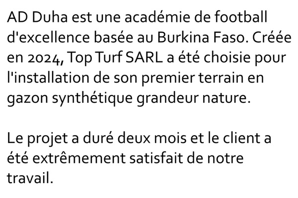 Deux terrains de football aux normes FIFA ont été construits pour l'Académie de Football Antonio Souaré. Nous avons également réalisé des travaux importants pour la construction du complexe sportif.